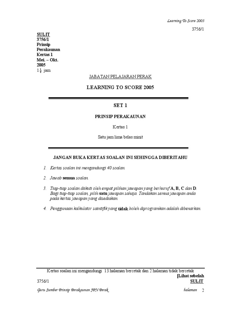 Soalan Prinsip Perakaunan Spm Kertas 1 Selangor I Otosection